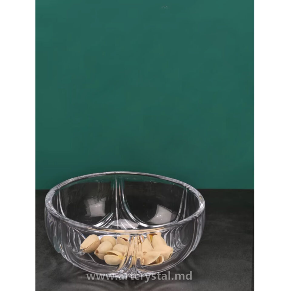 Bomboniera cu capac este realizată din cristal de Bohemia de înaltă calitate și rezistență, cunoscut pentru durabilitatea și strălucirea sa. Un model atrăgător, cu un decor frumos. Această piesă elegantă și unică va adăuga rafinament și o notă de aristocrație interiorului dumneavoastră.
