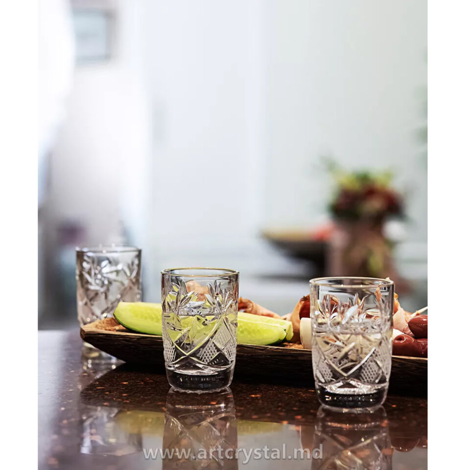 Aceste pahare de cristal vor fi plăcut folosite, nu doar la banchete festive, dar și în viața de zi cu zi. De asemenea, acestea vor fi un cadou bun pentru rude și prieteni. Doar ele se deosebesc printr-un material rafinat si nobil – cristal, tăietură de diamant, un joc de lumini, un sunet și o strălucire a cristalului de neegalat.