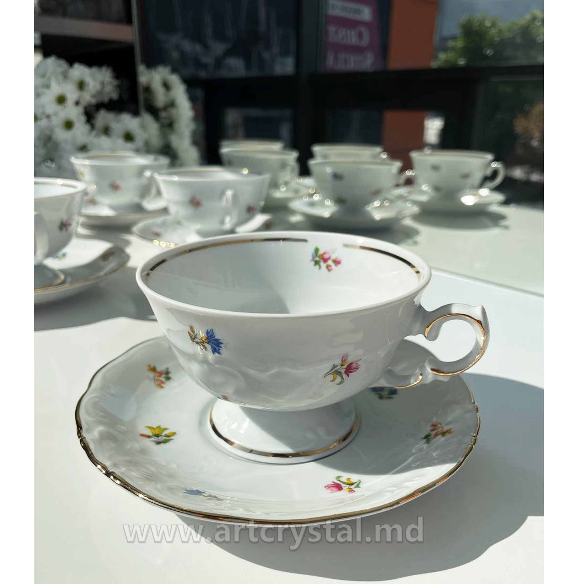 Набор чашек с блюдцами словно легкий весенний ветерок привнесет ощущение свежести в сервировку и интерьер вашего дома. Белоснежная глянцевая поверхность фарфора служит изумительным фоном для ярких цветочных рисунков. Цветочные орнаменты деликатно дополняют элегантные формы предметов, образуя единой целое. Она придаст свежести любой сервировке и обязательно поднимет настроение всем, кто окажется за столом.