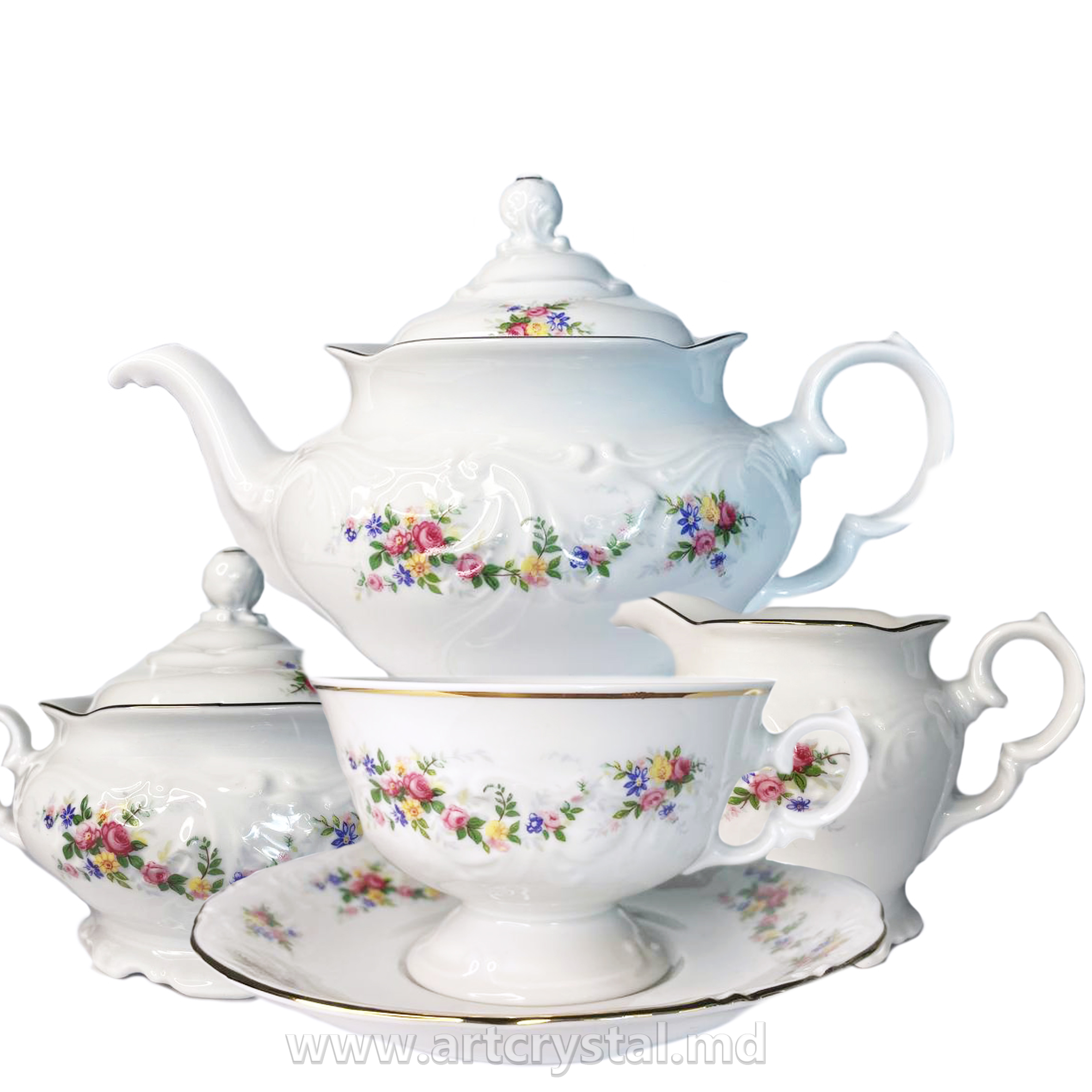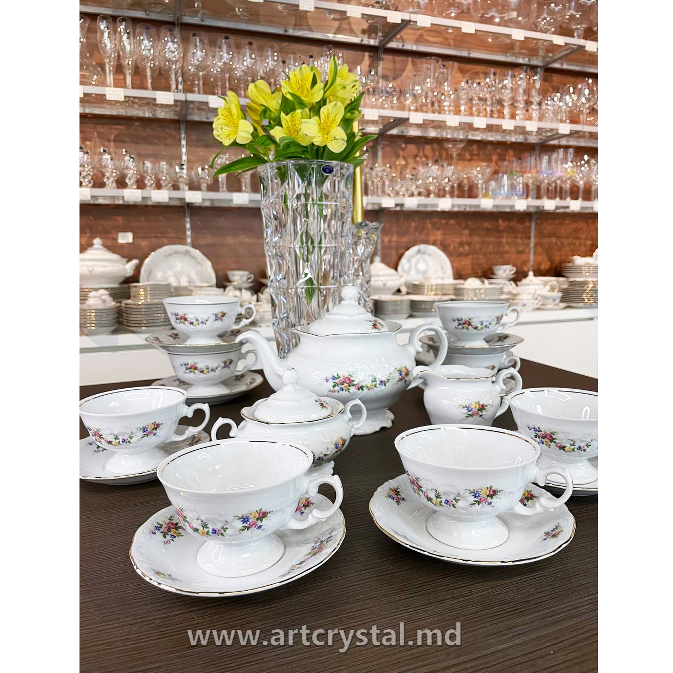 Роскошный сервиз «Fryderyka» на 6 персон непременно станет главным украшением любой сервировки. Выполненный из высококачественного и прочного фарфора, он порадует вас своей долговечностью и надежностью. Особенностью данного сервиза является его классический дизайн с золотистыми элементами и рисунком в виде цветов. В набор входят 6 чашек, 6 блюдец, чайник, сливочник и сахарница с крышкой.