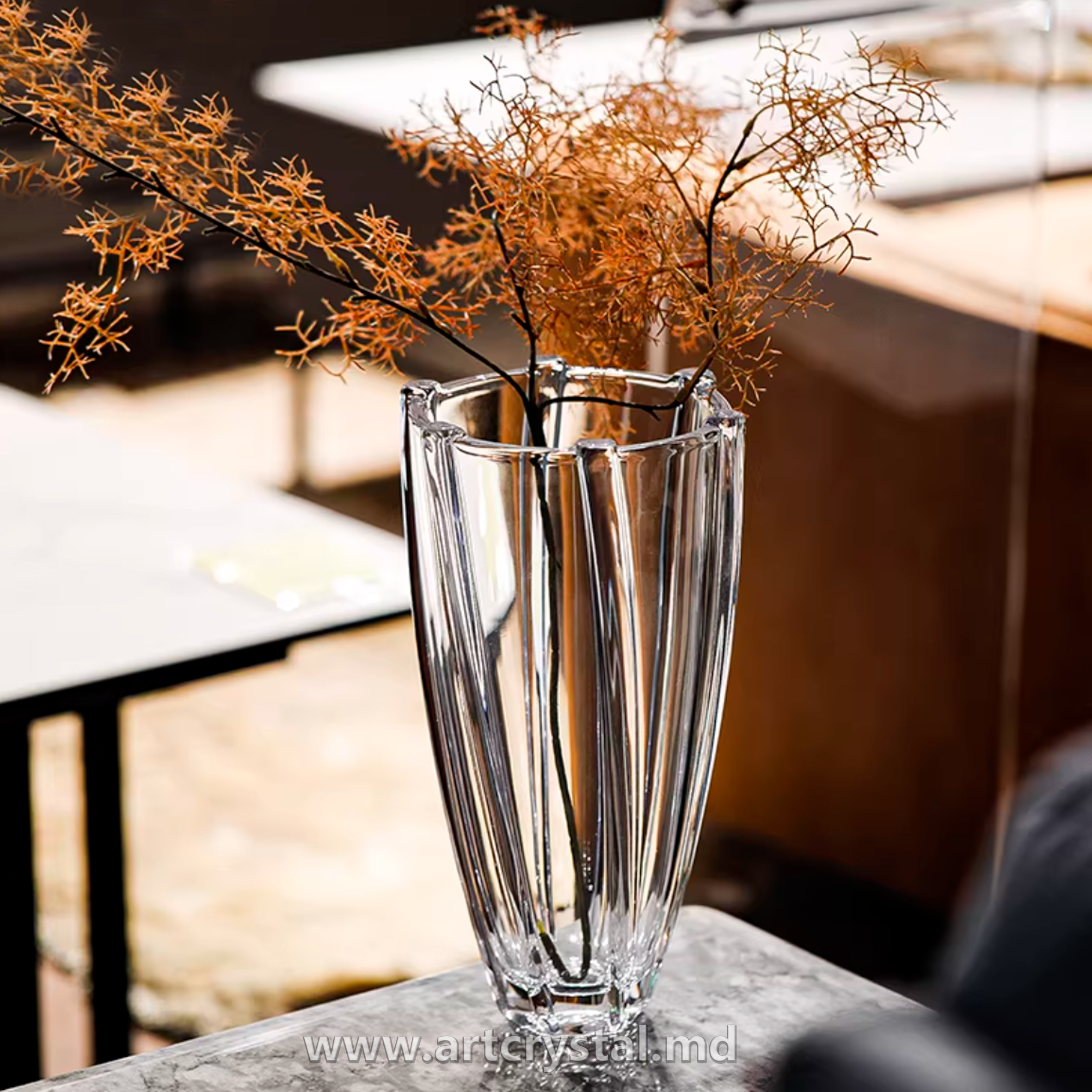 Стройная, глубокая, выразительная – эта ваза создана для цветов с характером и просторов с идеей. Массивное основание обеспечивает стабильность, а высокие стенки красиво отражают цветочные стебли.