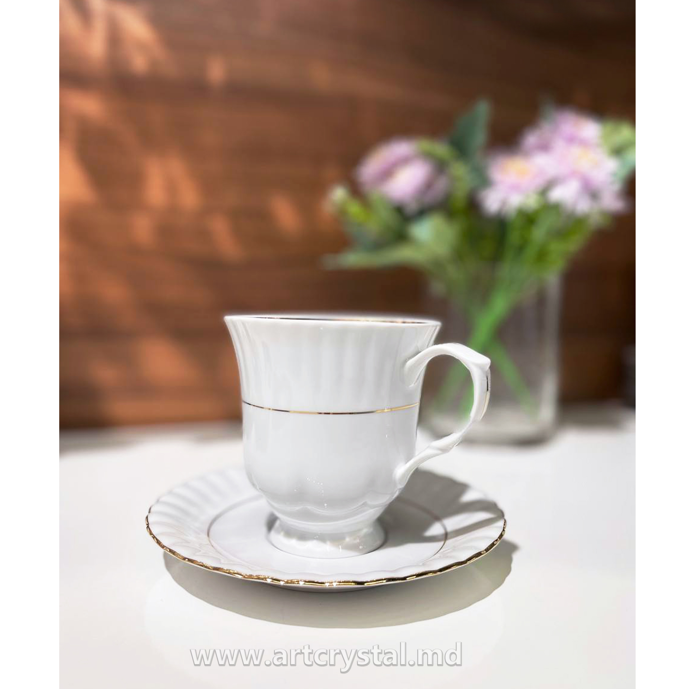Чашка с блюдцем выполнена из высококачественного фарфора, поэтому прослужит долгое время и сохранит свой первоначальный вид. Она станет прекрасным дополнением к вашей коллекции посуды или отличным подарком для самых близких. Дизайн выполнен в минималистичном стиле, что делает чашку не только функциональной, но и универсальной, подойдет под любой интерьер.