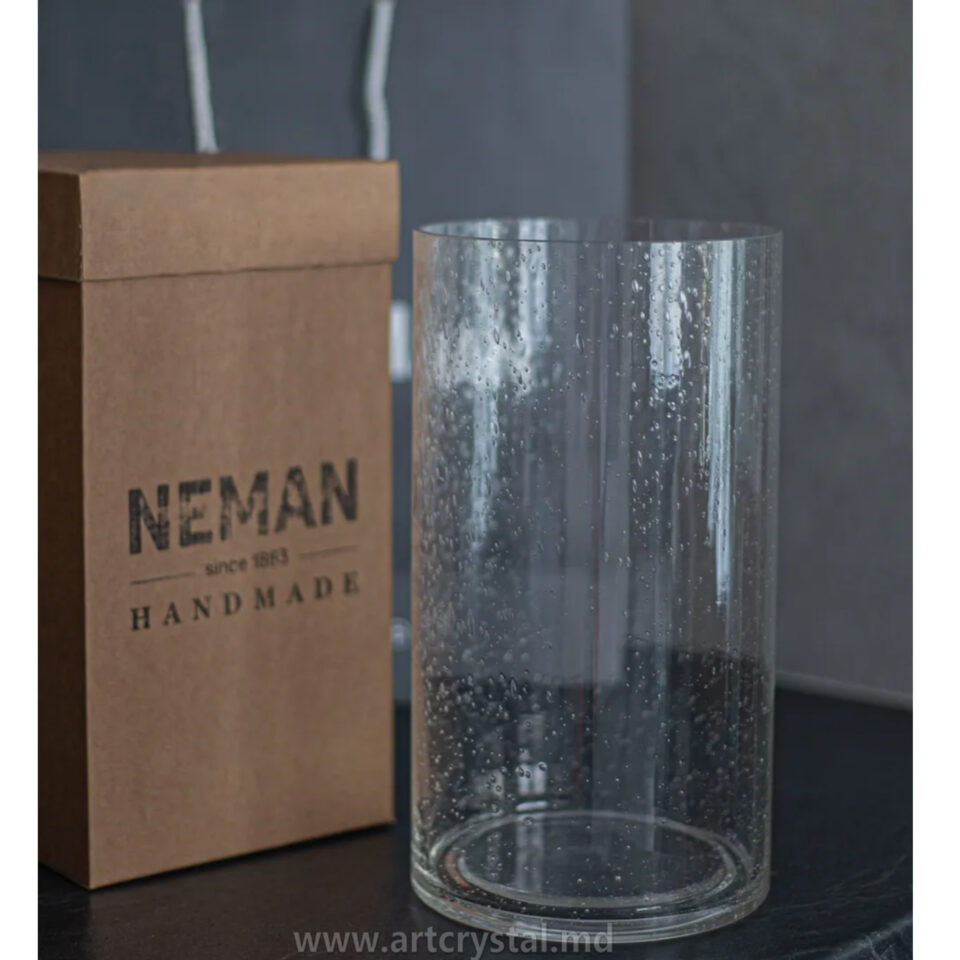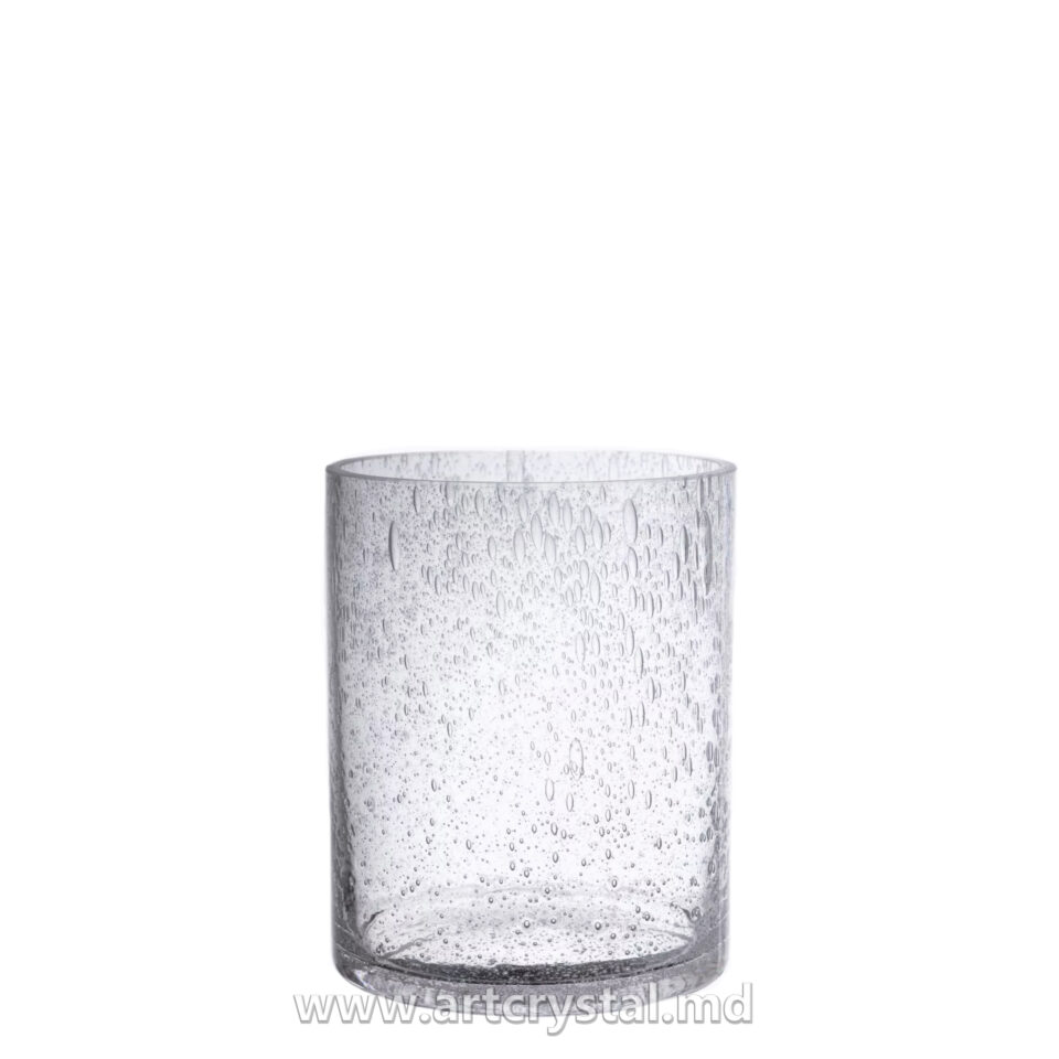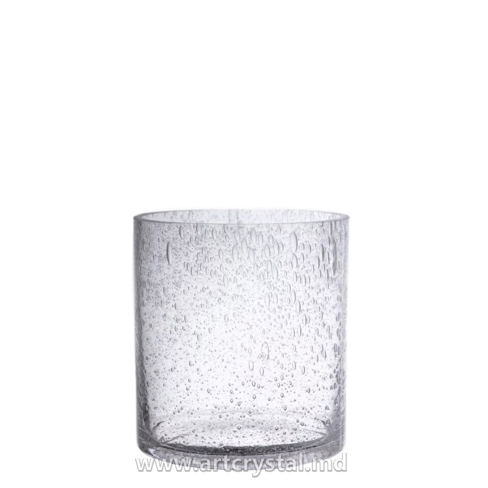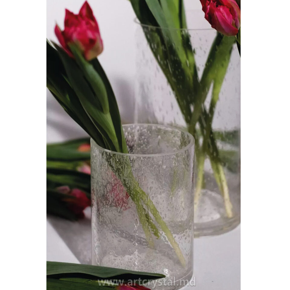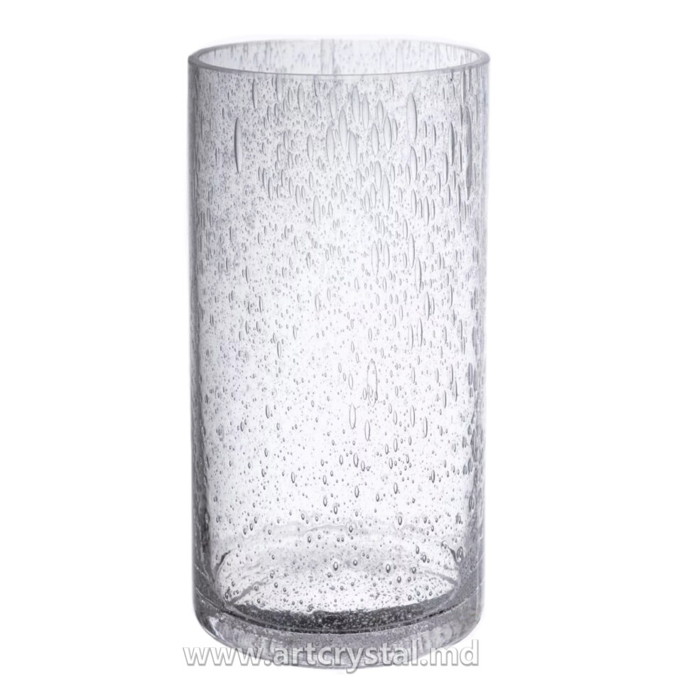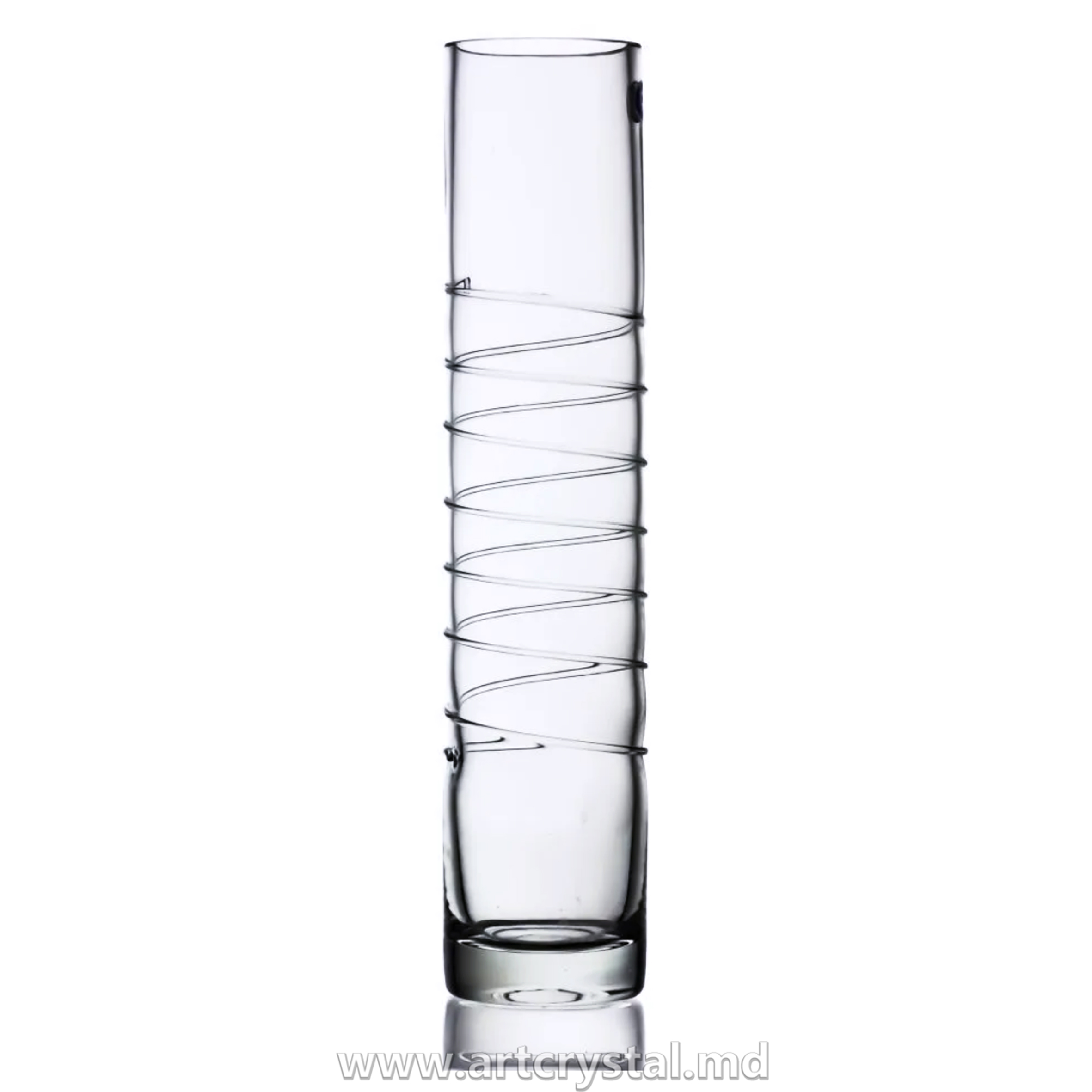 O vază-colbă stilată și modernă, decorată cu o spirală din sticlă.