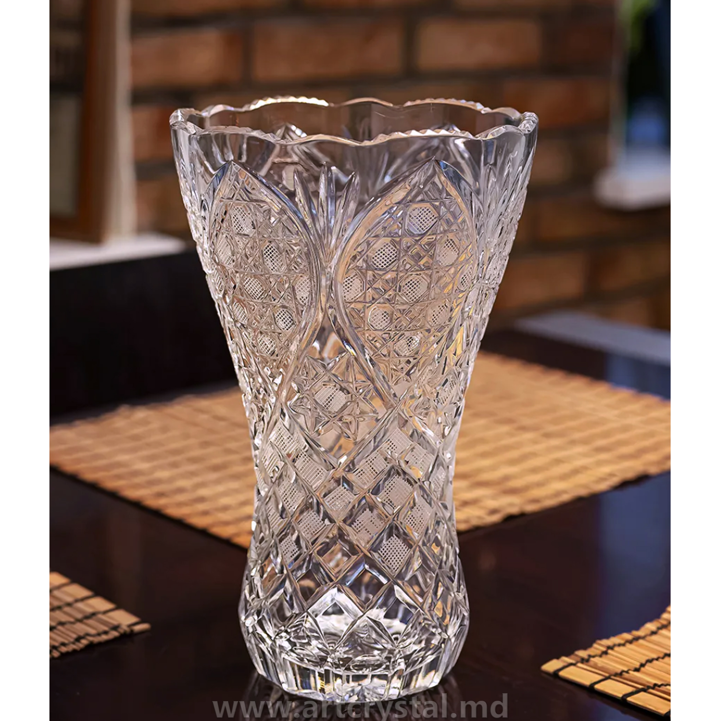 Vaza din cristal lucrată manual este întruchiparea luxului și rafinamentului, capabilă să transforme orice interior. Designul clasic conferă spațiului o atmosferă de eleganță și noblețe. Vaza spectaculoasă va crea un duet armonios cu un buchet de flori naturale și va deveni, de asemenea, un cadou minunat.