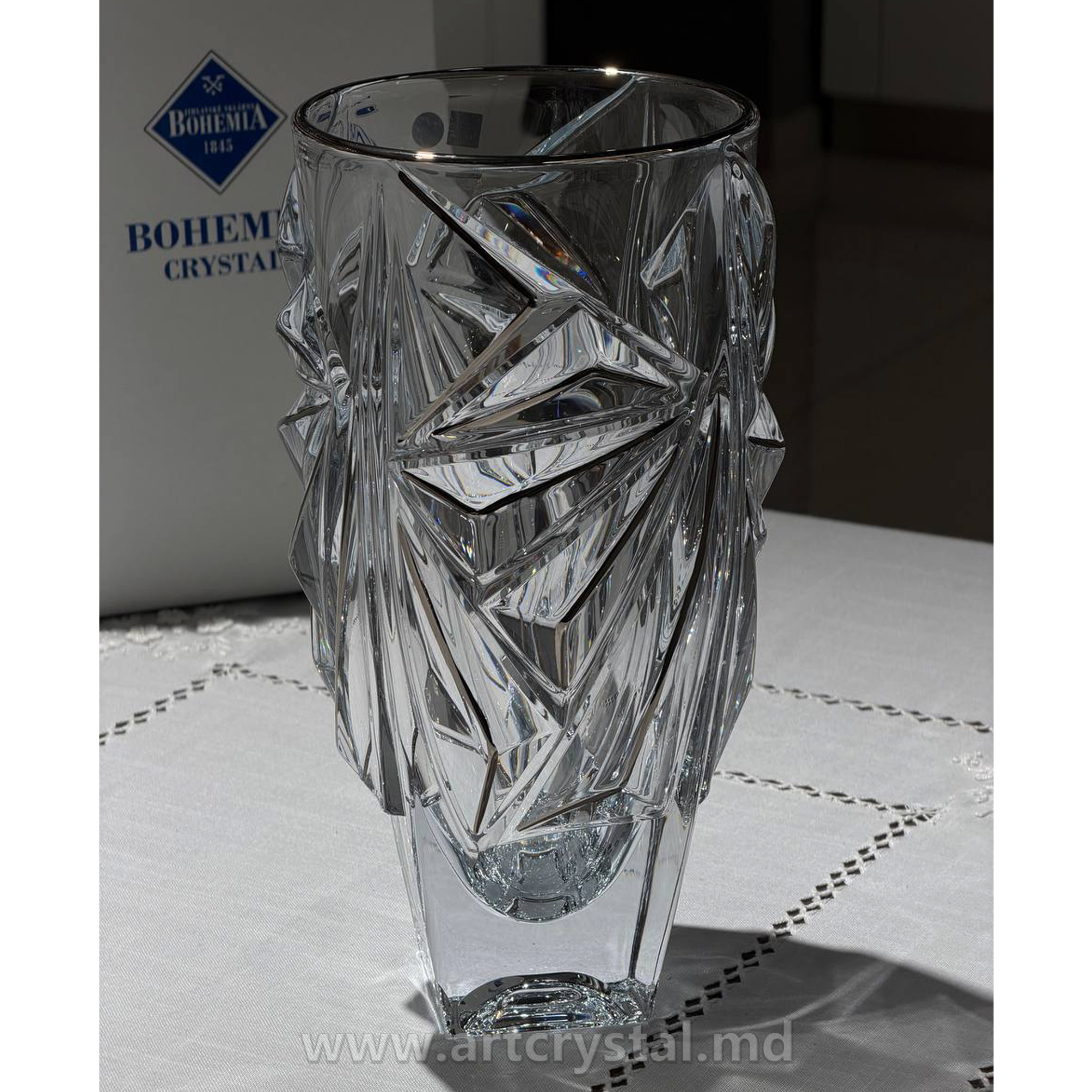 Шикарная ваза из чешского хрусталя. Чешский хрусталь, текстурный дизайн, концептуальный авторский стиль. Прекрасный подарок для ценителей изделий из настоящего хрусталя, выполненного вручную мастерами. Можно использовать как для цветов, так и в качестве интерьерной декоративной вазы. Создать декоративную композицию помогут живые или искуственные цветы. Авторская ваза гармонично впишется и оживит как классический, так современный интерьер, добавляя стильный, яркий акцент в комнатное пространство. Повседневная или праздничная сервировка стола, дополненная арт-декором, превращается в настоящее произведение искусства. Ваза станет желанным презентом на любой праздник.